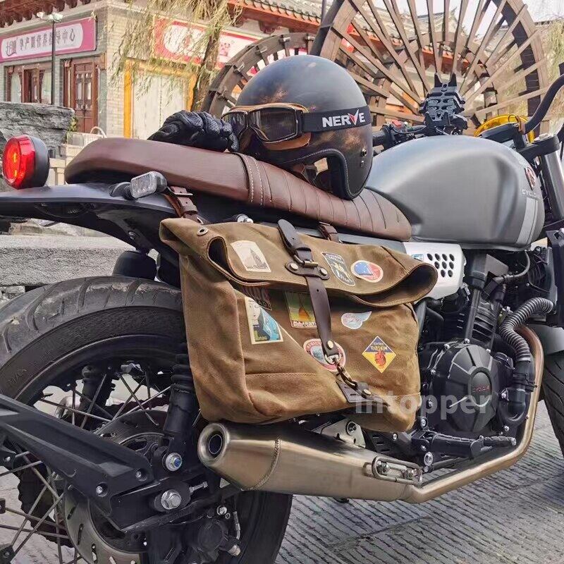 Vintage Men Motorcycle Backpack Waterproof Canvas Leather Retro Rear Seat Bag Motocross Saddlebags Biker Se Bag Brown